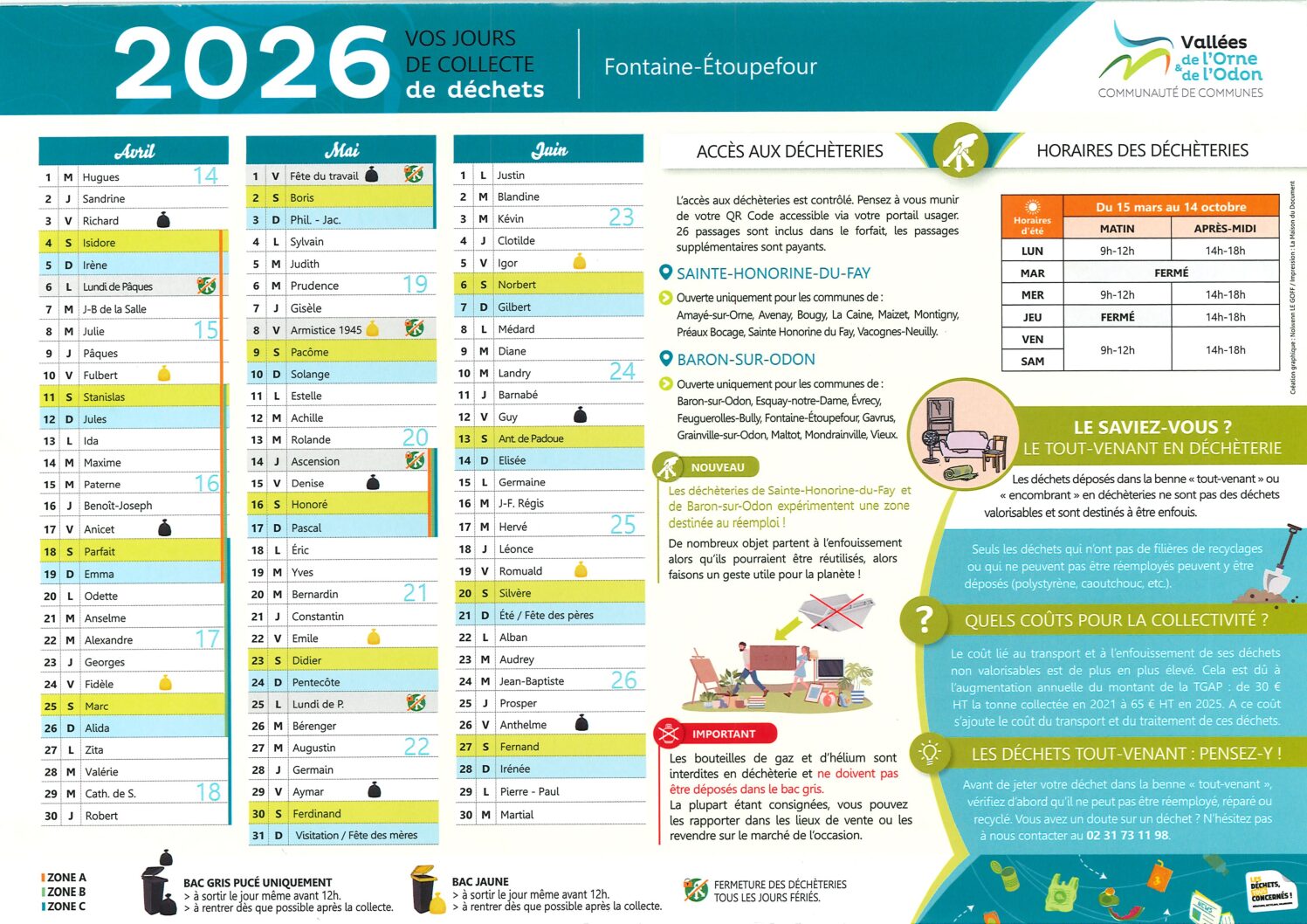 - Attention : les ordures ménagères ne sont pas acceptés en déchèteries !